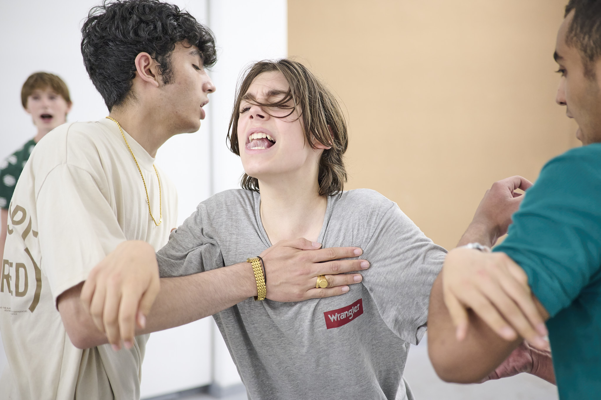 The starting point for the performance was the Greek folksong "Menussis". It is about the man Menussis, who cries because he killed his wife in alcohol intoxication because she is said to have talked to another. The name of the woman is unknown - only Menussis is named and regretted. During my research, I found many songs with similar content, also popular in Germany. I finally developed the performance based on the song "My Delilah" by Tom Jones (1968), written in English. In the song, the singer stabs his wife Delilah to death because she had cheated on him with another man. In the performance, a group of young people interprets the lyrics of the song, transforms them in part, and opens up a new and liberating view of the narrative of the song, which is still powerful in this country, and which bears witness to heteronormative claims to power and ownership as well as subliminally to misogynous ideas. Quiet scenes alternate with scenes in which the lyrics are shouted during a physical action between the participants.
